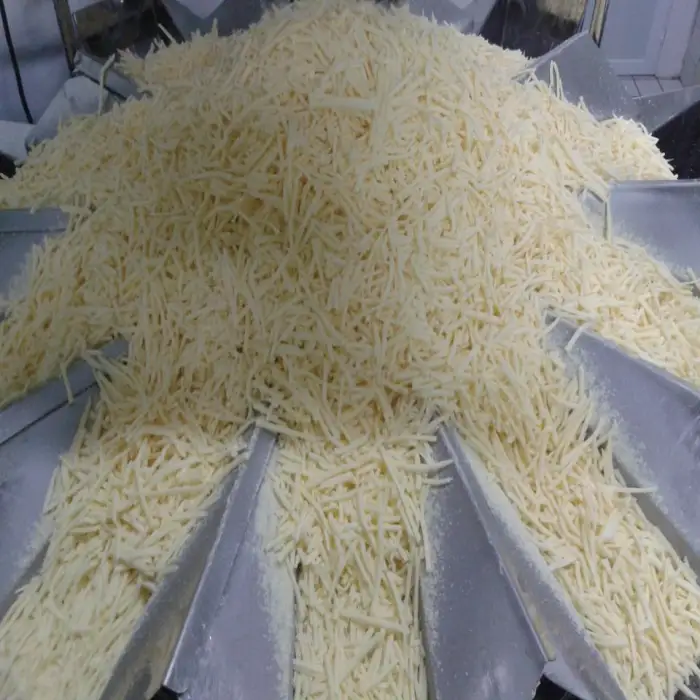 The machine is designed primarily for packaging mozzarella slices and cream cheese fillings, but it can also handle various snack foods, chemicals, and hardware items.