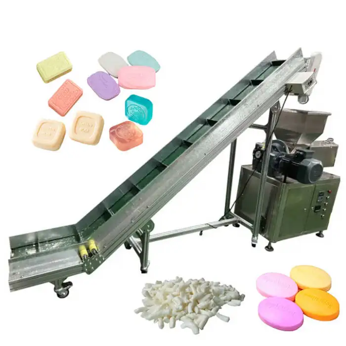 The main function of the Automatic Soap Making Machine is to efficiently produce both soap powder and bar soap through a fully automatic process that includes grinding, stirring, and cutting.