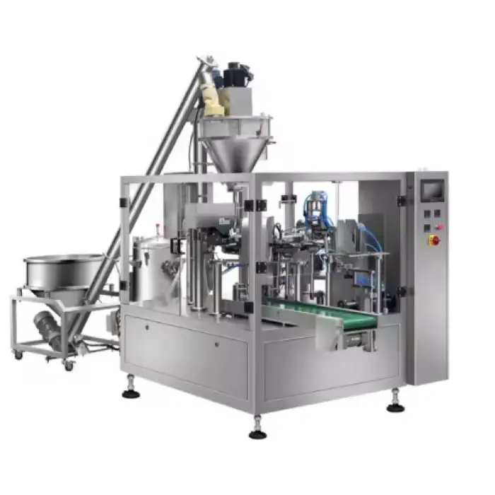 The Automatic Spices Seasoning Chili Coffee Milk Powder Pre-made Pouch Bags Multifunction Packing Machine can package a variety of products including spices, coffee, milk powder, and other food, medical, and chemical products.