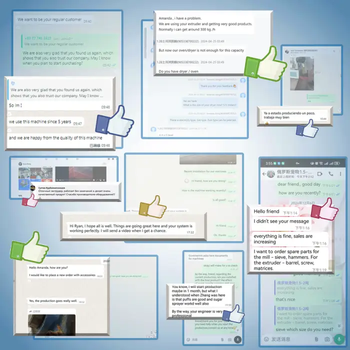 The machine has three production capacity options: 150 kg/h, 250 kg/h, and 350 kg/h.