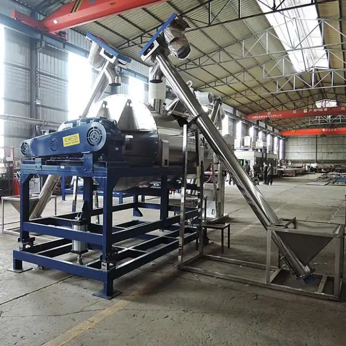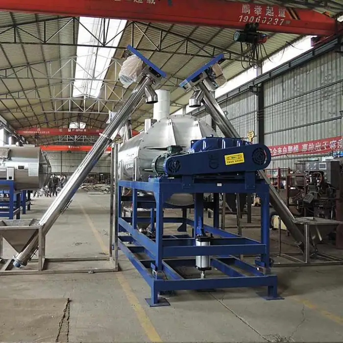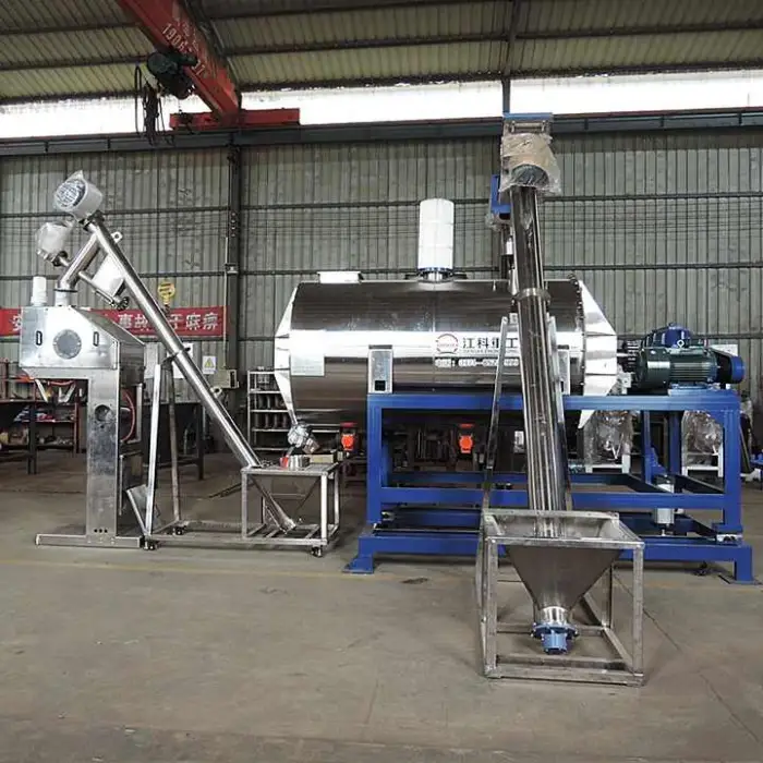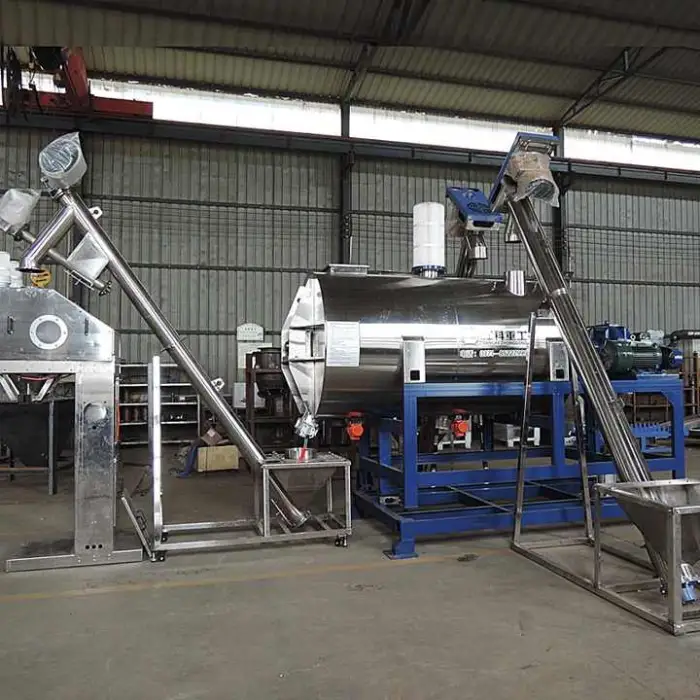 The equipment uses a double helical ribbon stirrer for efficient mixing.