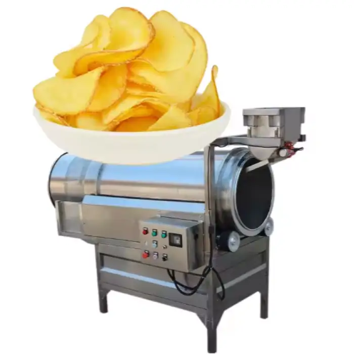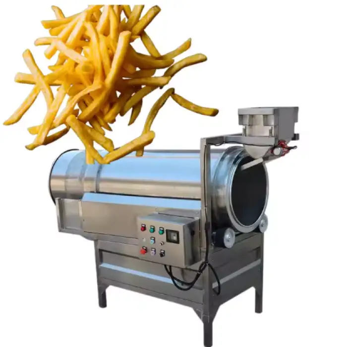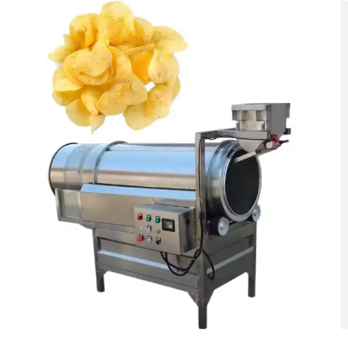 Automatic Stainless Steel Snack Seasoning Drum Popcorn Chips Flavoring Machine Rotary Seasoning Machine Food Application