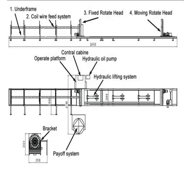The machine can accommodate a spiral pitch ranging from 50 mm to 500 mm.