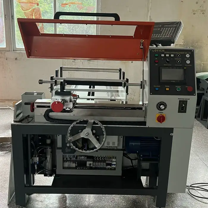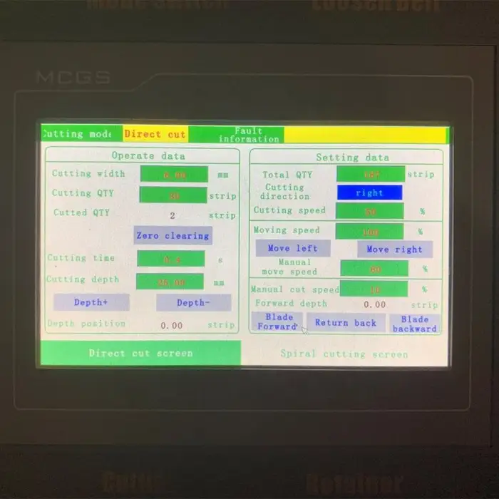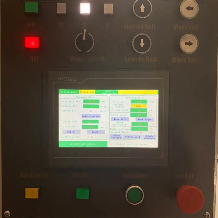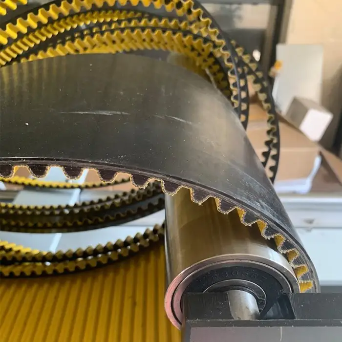 This machine is ideal for the rubber processing industry, particularly for cutting rubber strips used in manufacturing transmission belts.