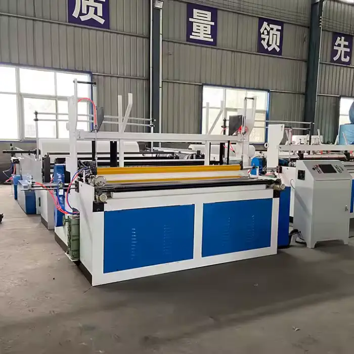 This machine is designed to produce high-quality toilet tissue paper rolls and is suitable for both embossed and non-embossed paper products.