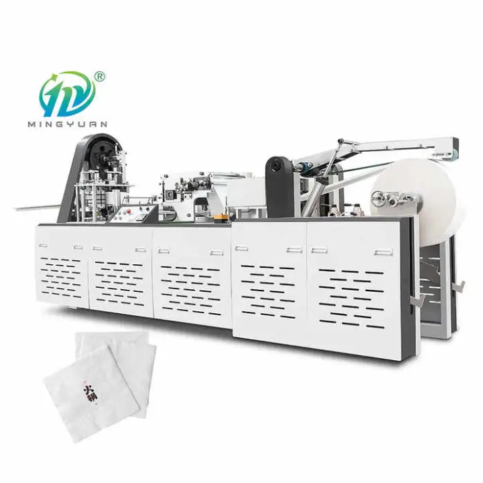 The machine handles standard small napkin and tissue folding patterns. Specific folding patterns, ply configurations, and custom folding requirements should be confirmed with the supplier as options or tooling changes may be required.
