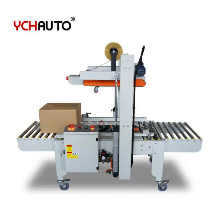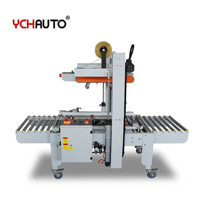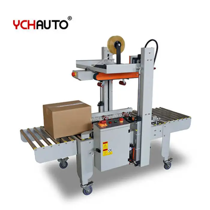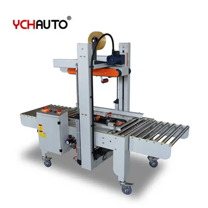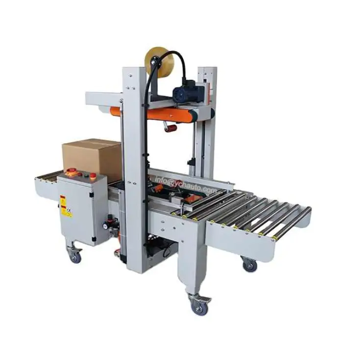 This machine automatically seals the top and bottom flaps of cartons with adhesive tape. It is designed for fast, consistent sealing of cartons used in food, beverage, chemical, apparel, hardware and general commodity packaging.