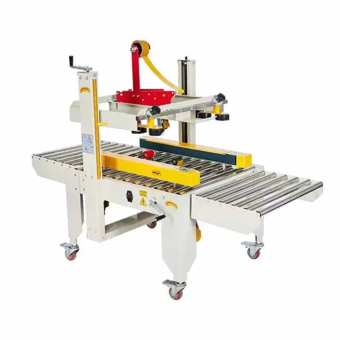 Yes — the sealer is adjustable to accommodate a range of corrugated box sizes. Height guides and tape heads are typically adjustable; contact the vendor for exact minimum/maximum box dimensions or for custom adjustments.