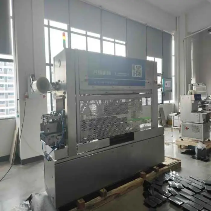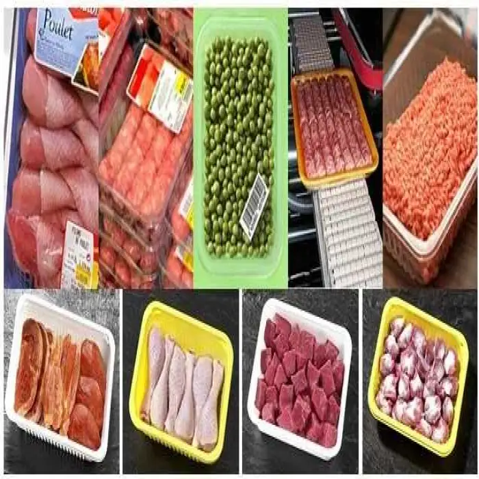 It automatically removes air and seals cover film over pre-formed trays (such as sausage trays), producing tightly sealed packages to extend shelf life and improve presentation. It handles film, foil and plastic materials and is designed for high-speed, continuous operation.