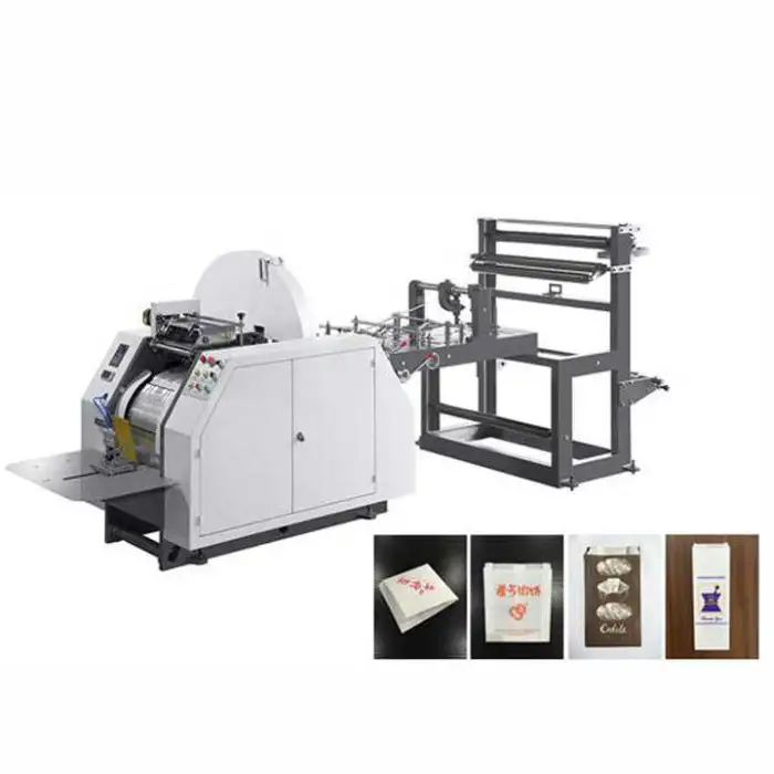 The machine produces V-bottom brown paper bags (commonly used as fruit bags) and is versatile for various sizes within the specified ranges. It is ideal for retail, food service, and eco-friendly packaging applications.