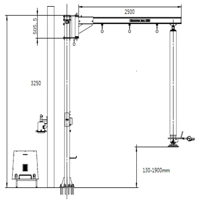 The dimensions of the equipment are 50 cm in length, 55 cm in width, and 25 cm in height.