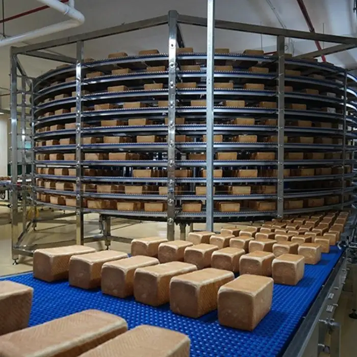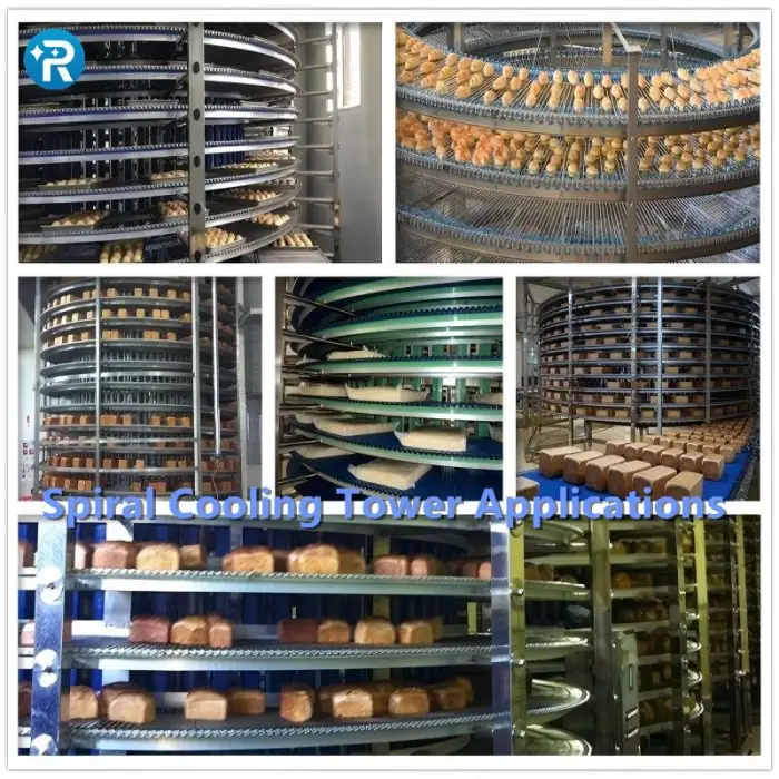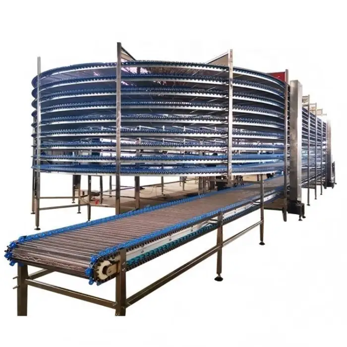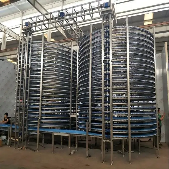 Bakery Chocolate Assembly Line Equipment 10Layers Screw Tower Spiral Cooling Conveyor Tower for Bread with Plastic Modular Belt