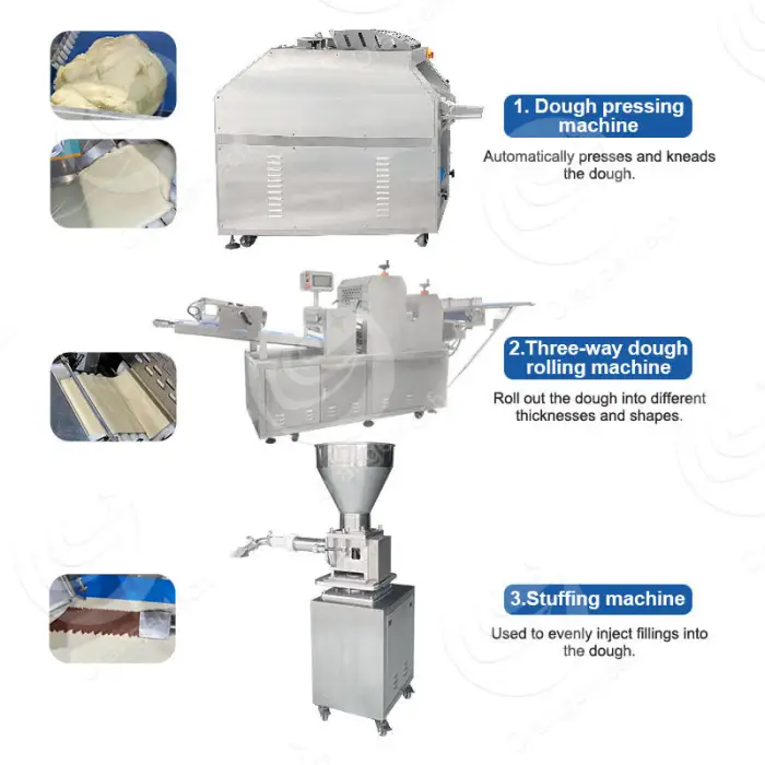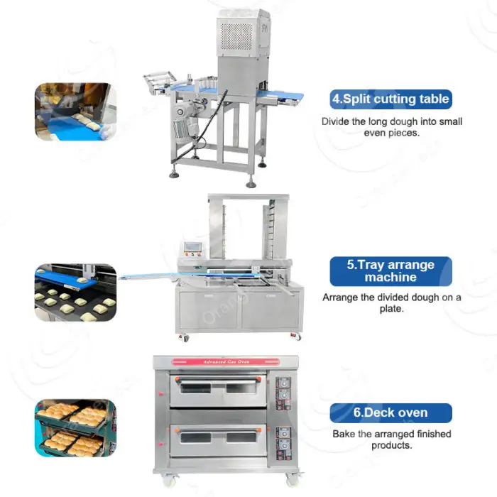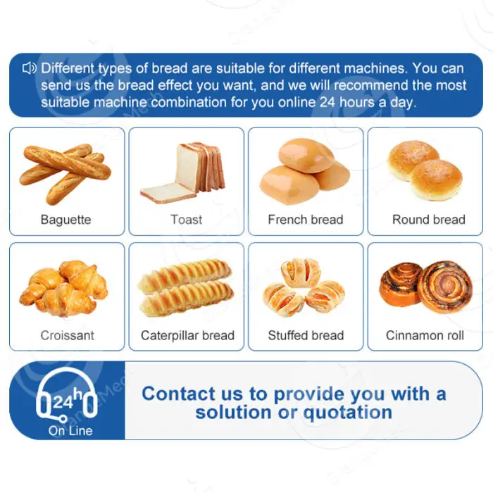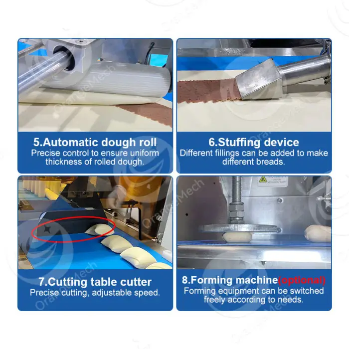 You can make a variety of breads, including stuffed bread, French baguettes, and toast using this multifunctional bread production line.