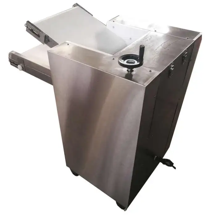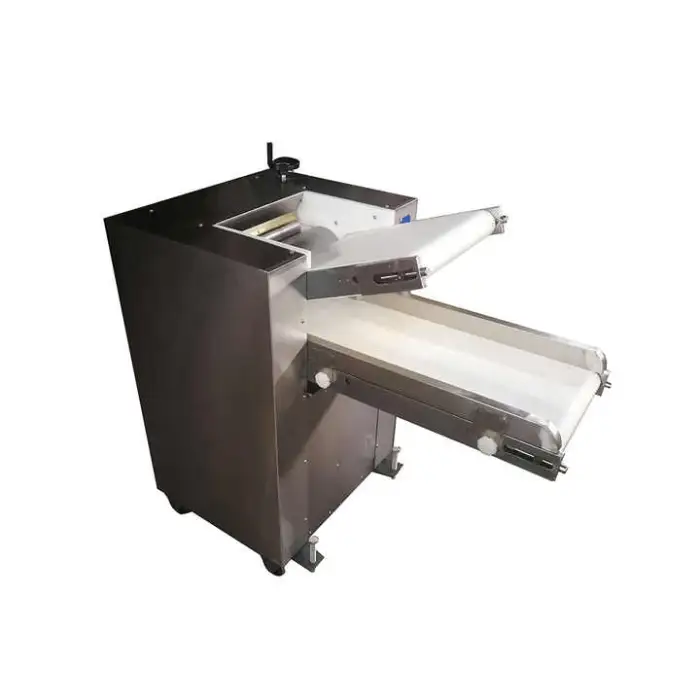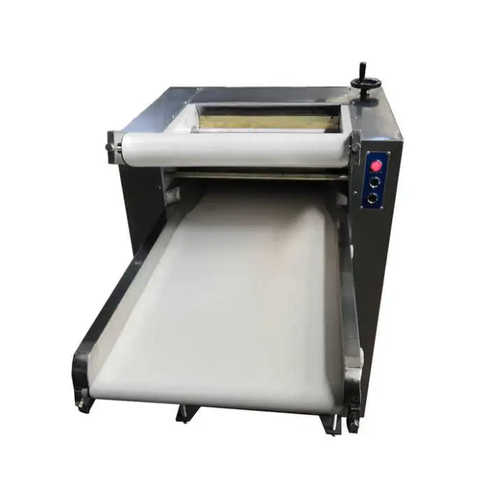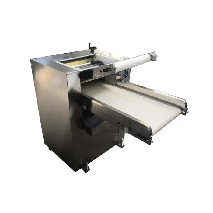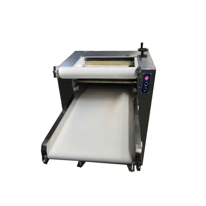 A dough laminator is a bakery machine designed to roll and sheet dough evenly, creating layers that are essential for pastries like croissants. It works by using a powerful motor to roll the dough to the desired thickness.