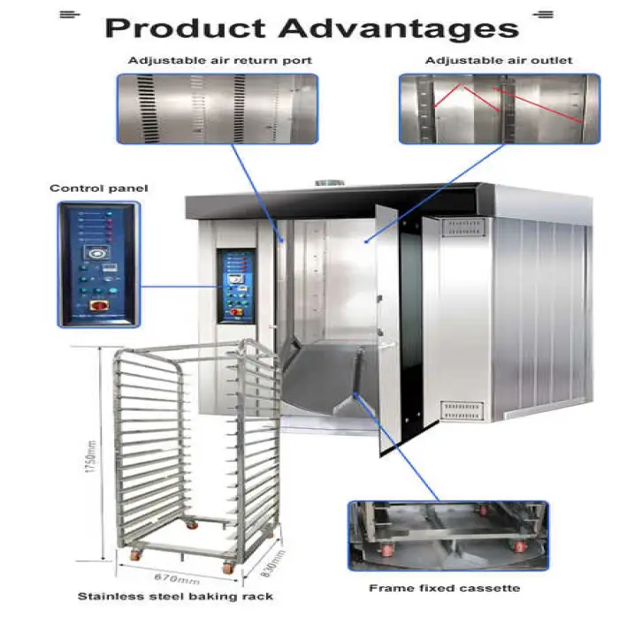 Baking Rotary Rack Oven Bread Maker Oven Automatic 16 Tray Gas/Electric/Diesel Rotary Oven for Pizza/Cake