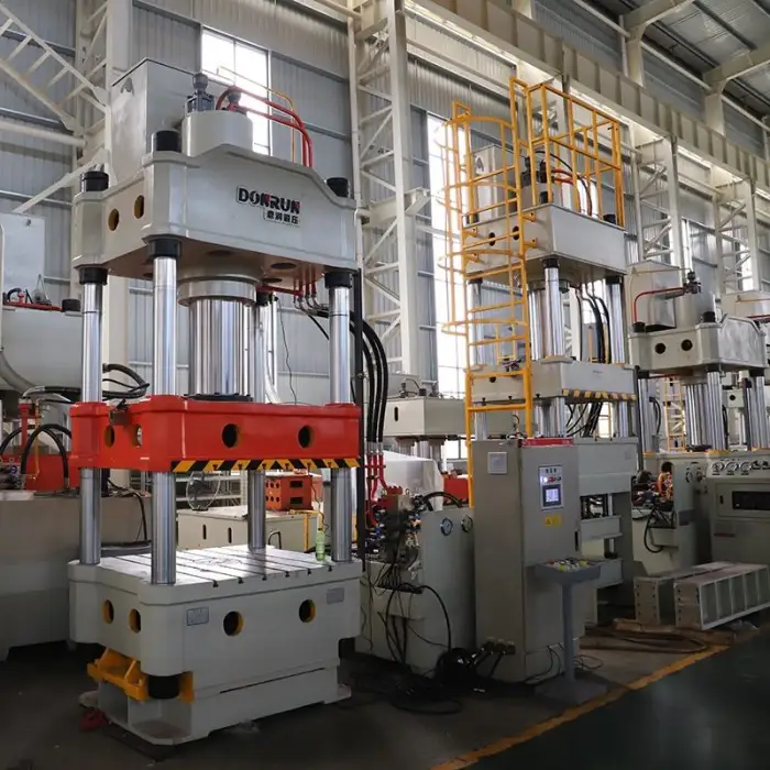 The machine features a sturdy four-column structure that ensures stability and reliability during operation.