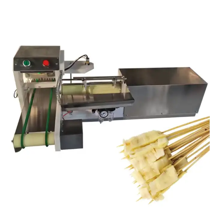 The Bbq Bamboo Meat Skewer Machine can produce up to 2000 pieces of kebabs per hour.