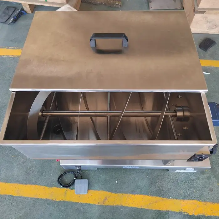 The U-shaped hopper allows for effective stirring, ensuring even distribution of the material during the filling process.