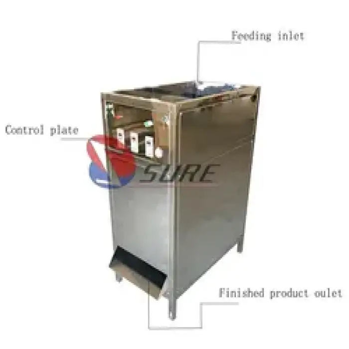 The peeling machine is made from durable 304 stainless steel, which ensures long-lasting use and resistance to corrosion.