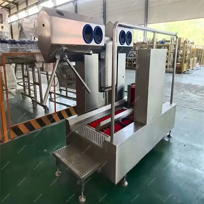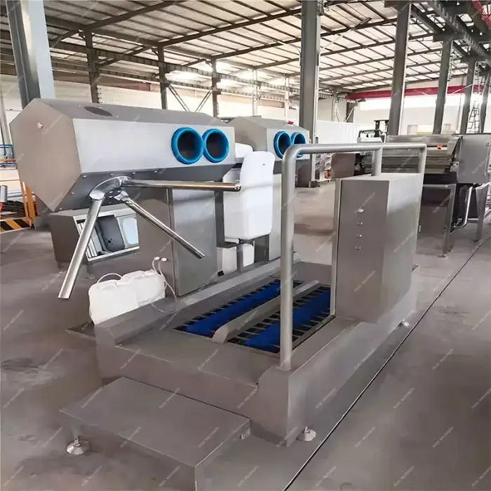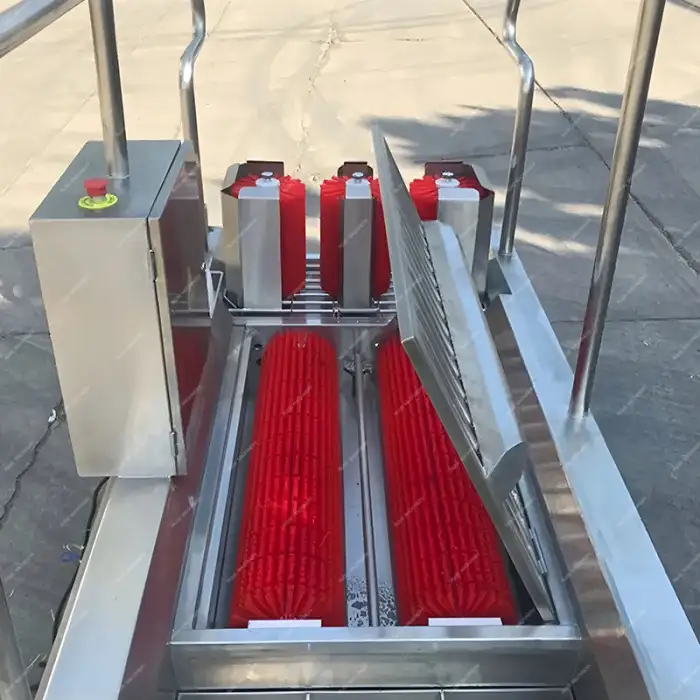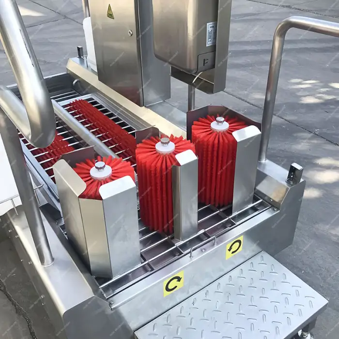 The Boot Washer Cleaning Machine is an industrial tool designed to clean and sanitize rubber boots and shoes automatically, making it ideal for maintaining hygiene in various sectors.