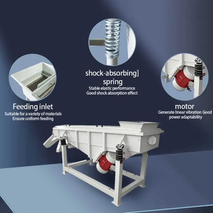 Linear vibrating screens produce vibration and some noise. Management options include spring or rubber isolators, anti-vibration mounts, acoustic enclosures, and proper foundation design. Selecting appropriate isolation and maintenance reduces transmitted vibration and noise levels.