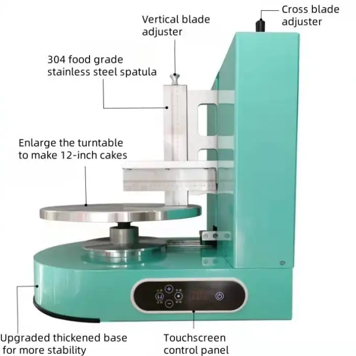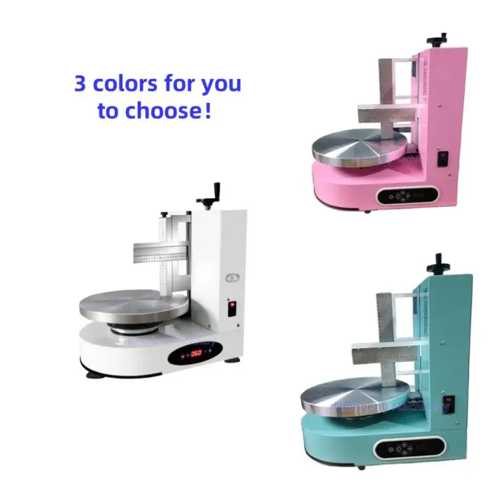 Throughput depends on cake size, degree of finishing required, and operator workflow. Small layer cakes can often be levelled and smoothed in a matter of minutes each, so multiple cakes per hour are possible. For exact capacity, request a demonstration or performance specs from the supplier.