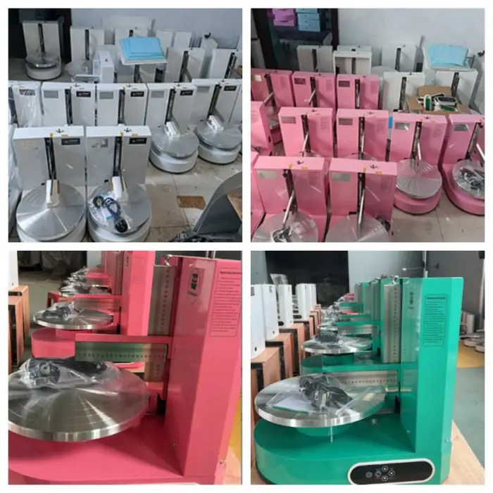 This compact machine is designed to automate cake levelling and smoothing tasks and to assist in cake production workflows. It helps create evenly level cake layers and smooth surfaces for easier finishing. It is typically used alongside other baking equipment (ovens, mixers).
