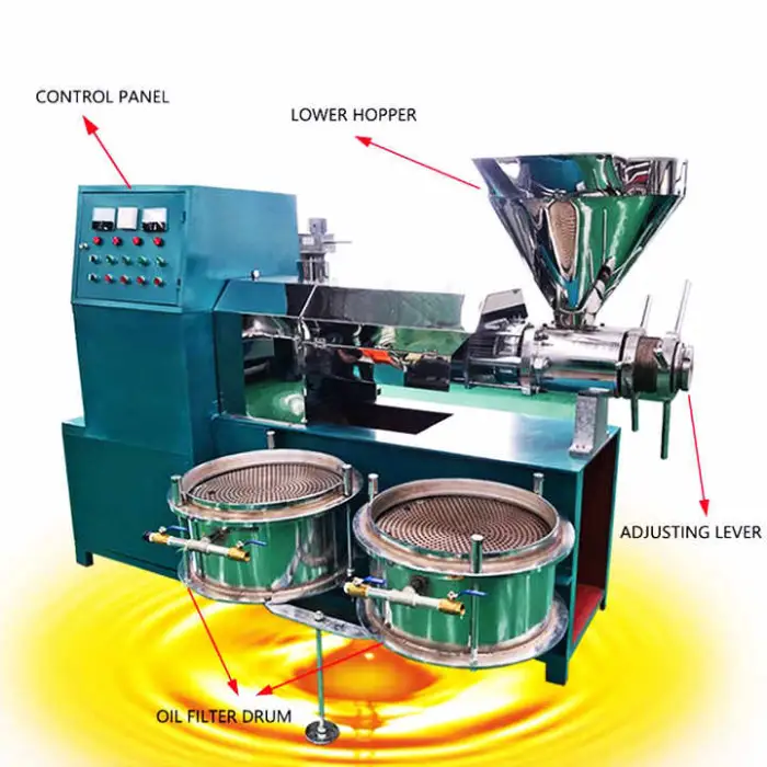 The machine can process a variety of seeds including flax seed, soybean, rapeseed, tea seed, basil, sesame, pine nut, sunflower, almond, walnut, peanut, coconut, olive, and palm.