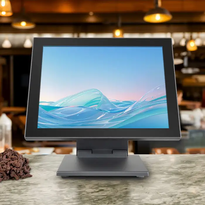 The POS system uses a 10-point capacitive touchscreen for responsive interaction.