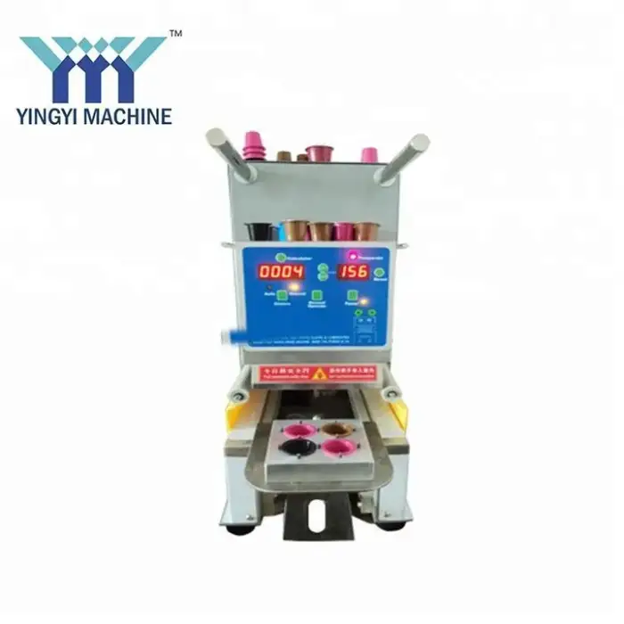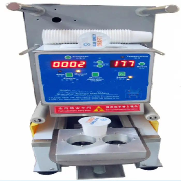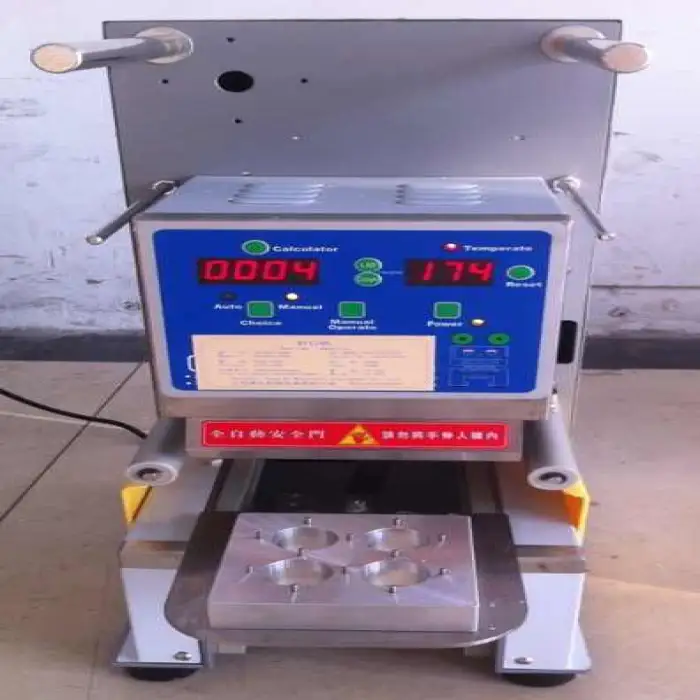 The Capsule Banding Plastic Cup Thermoforming Sealing Canning Machine is semi-automatic.