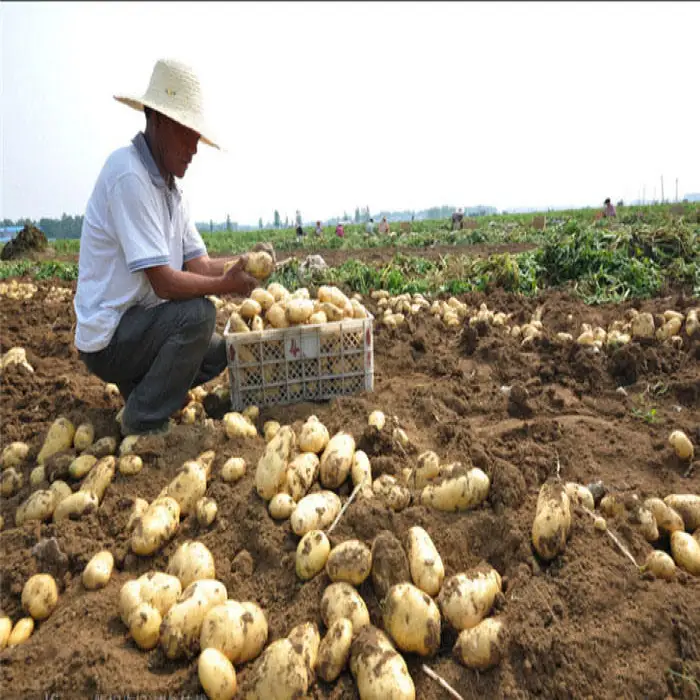 The machine can harvest carrots, tomatoes, garlic, onions, sweet potatoes, and potatoes efficiently.