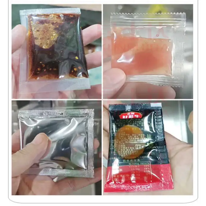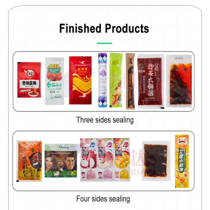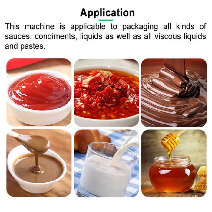 The CE Automatic High Speed 4 Side Seal Sachet Pouch Packing Machine is designed for liquid and paste products like tomato sauce, ketchup, sauces, jams, and other similar items.