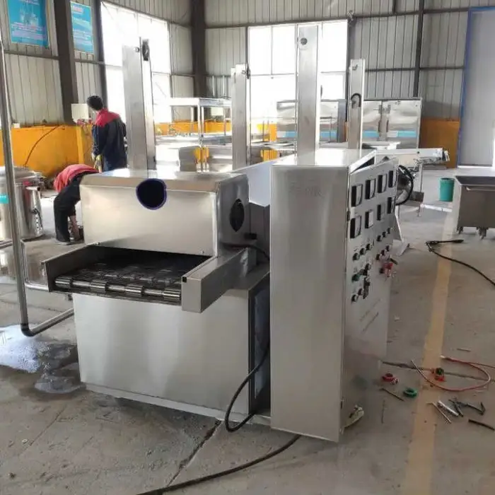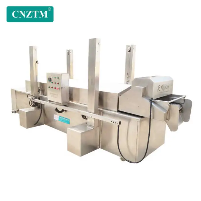 The machine has a capacity of 200-300 kg/h, making it suitable for high productivity demands in large batch frying.