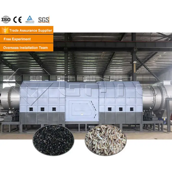 The machine is designed to carbonize organic materials such as sawdust, rice husk, and coconut shell.