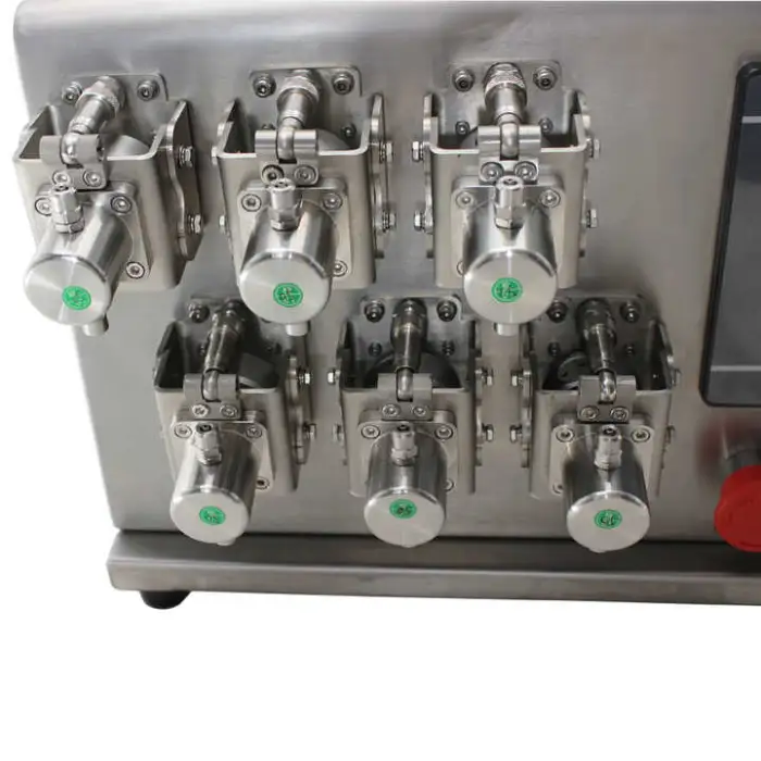 The machine features a durable ceramic pump that provides reliable performance and ensures precise liquid dosing.