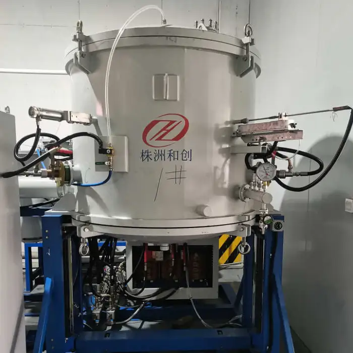 The equipment uses graphite resistance heating to provide efficient and uniform heat distribution.
