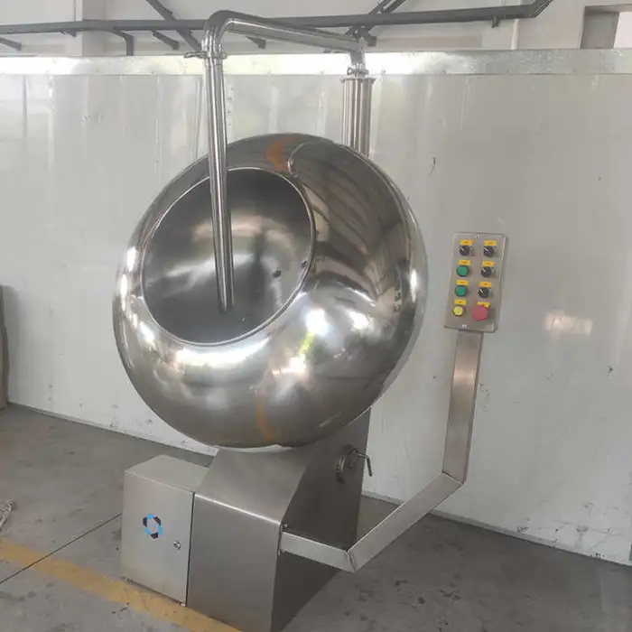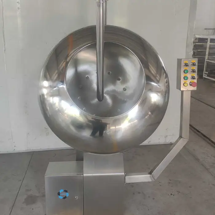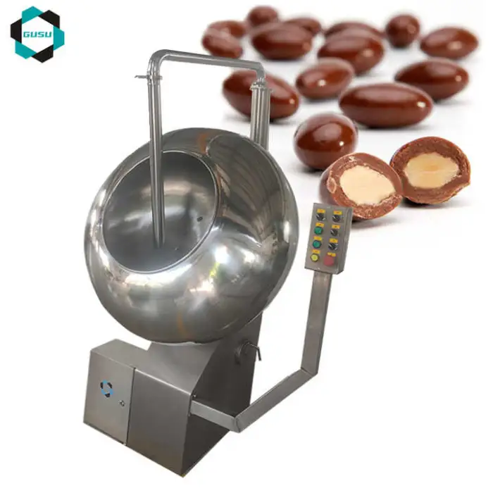 It is designed primarily for coating nuts such as peanuts and almonds, but is also suitable for other small snacks and confectionery items used in chocolate coating processes. Confirm suitability for any specific product with the supplier.
