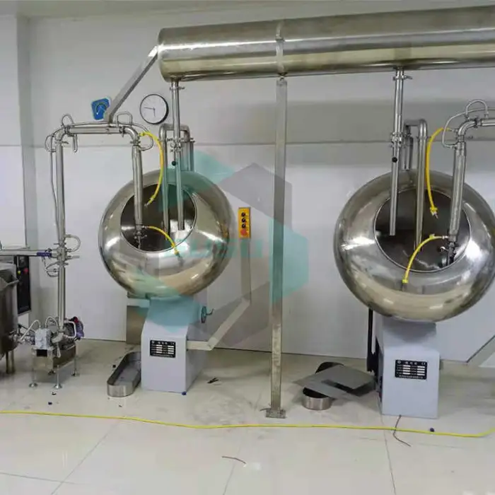 The machine capacity is 45–90 liters, which determines batch size. Actual throughput (kg/hour) depends on product density, coating build-up, process parameters and chocolate formulation. We recommend running pilot trials or consulting the supplier to estimate your expected hourly output.