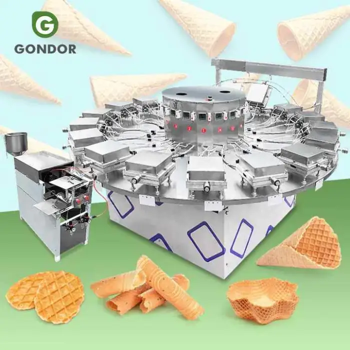 The Chocolate Stroopwafel Full Automatic Dutch Sugar Ice Cream Waffle Cone Maker can produce up to 300 pieces per hour.