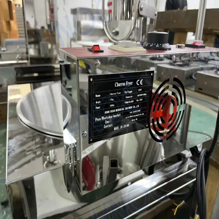The churros maker has a hopper volume of 5 liters, allowing you to hold a significant amount of dough.