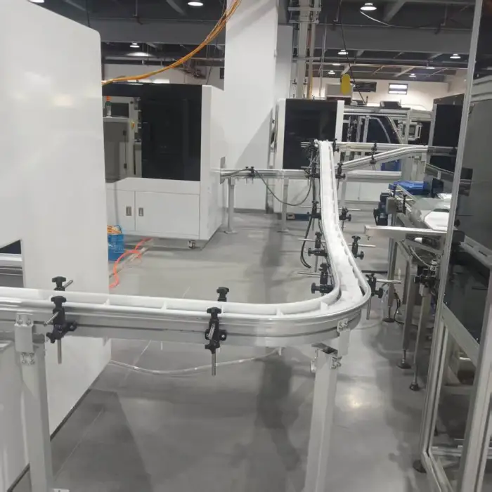 Classic POM Material Flexible Aluminium Chain Conveyor System Adjustable Speed Gravity Beverage Transport Line