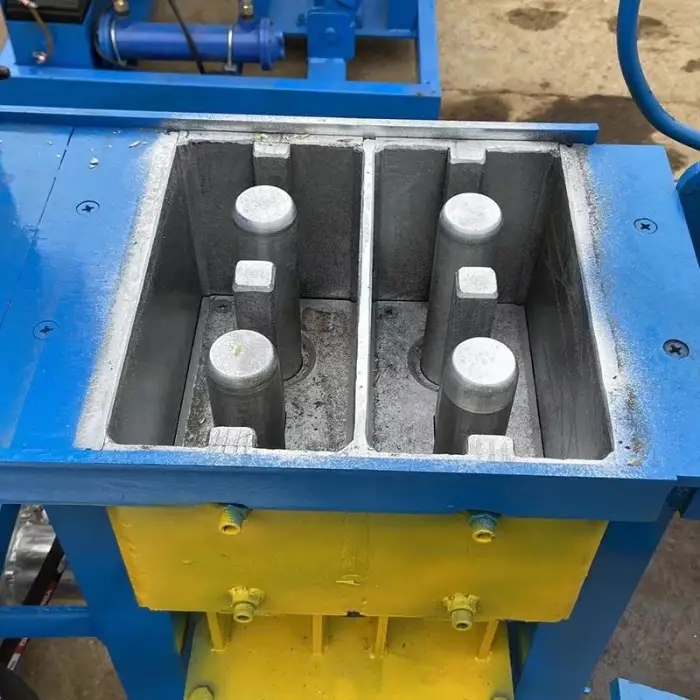 This machine utilizes hydraulic pressure for efficient and effective block making.