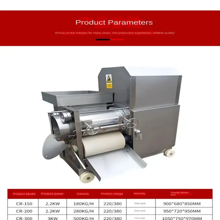 This machine is ideal for meat processing plants, fish processing facilities, fruit and vegetable processing, restaurants, catering services, and home kitchens.