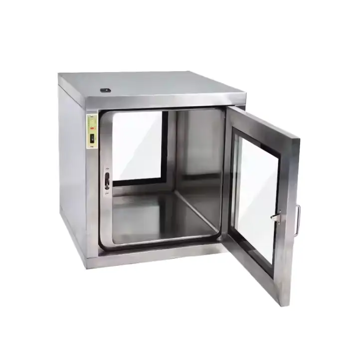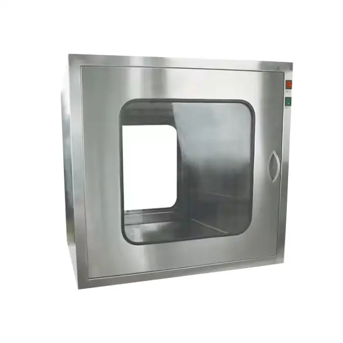 The pass box is suitable for cleanroom operations in laboratories, electronics manufacturing, pharmaceutical industries, and research facilities.