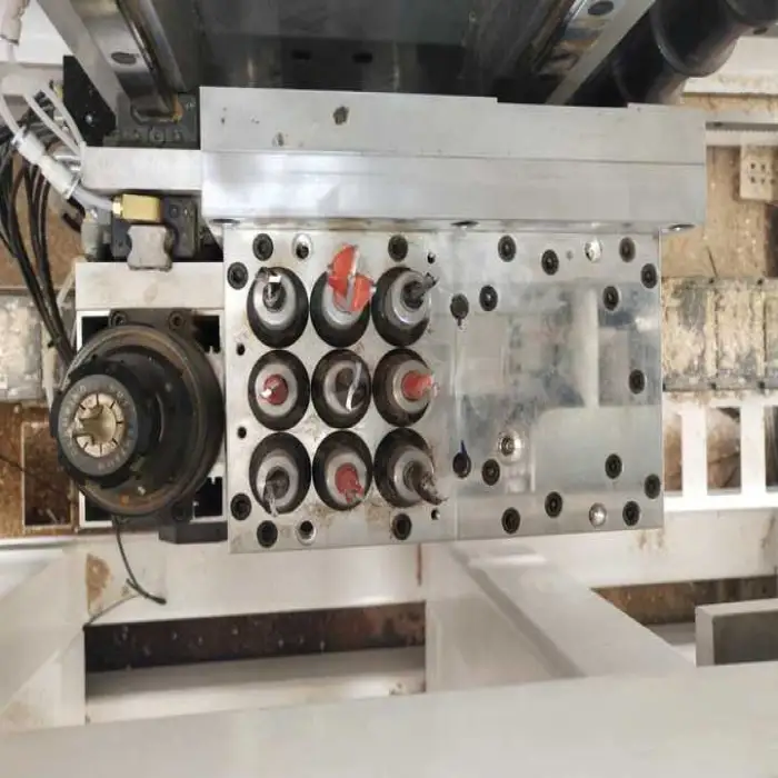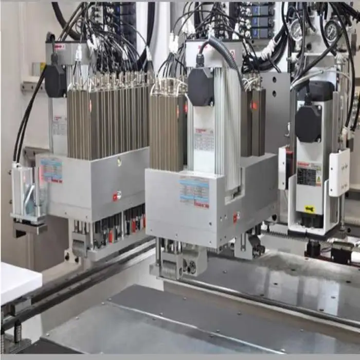 The machine includes a total of 29 drill bits: 12 upper vertical, 8 upper horizontal, and 9 bottom vertical.