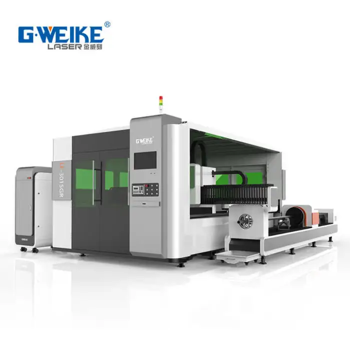 The machine offers laser power options of 300W, 500W, 1000W, 2000W, 3000W, and 5000W.