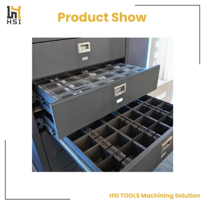 The CNC Tools Management Cabinet features six spacious pull-out drawers for easy access to your tools.