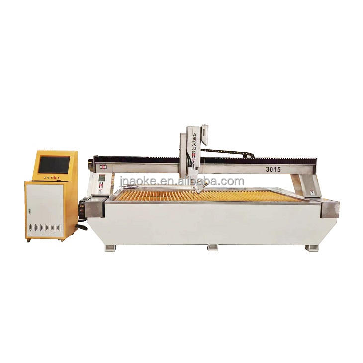 The CNC Water Jet Cutting Machine 3015 is a powerful tool designed for precision cutting. It can handle a wide variety of materials including metal, stone, glass, and soft materials. This machine offers both three and five-axis cutting options, making it versatile for different projects. With its high-pressure water cutting technology, it ensures clean and accurate cuts every time.