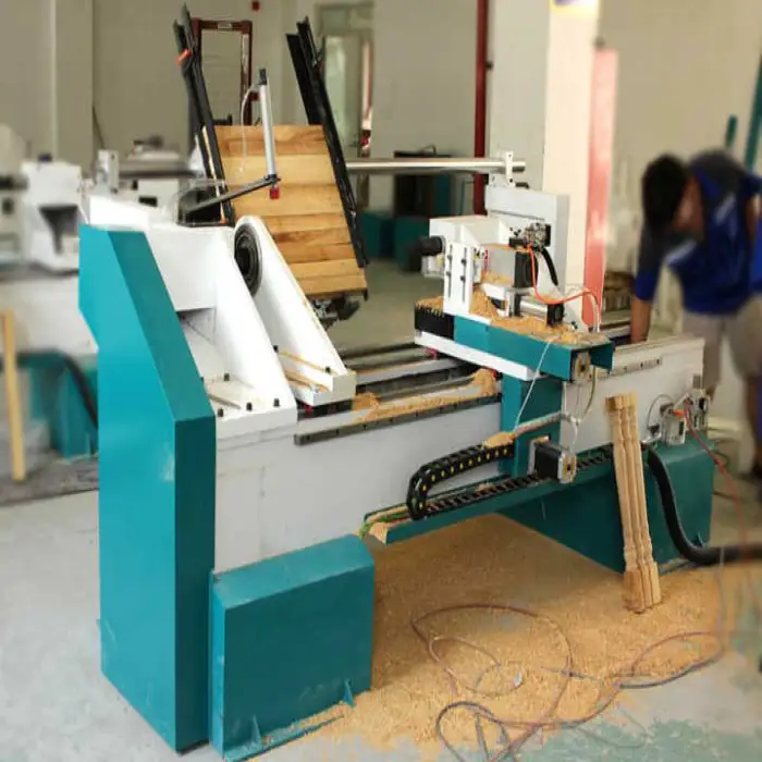 Yes. With a 9–10 kW motor and a max turned length of 1500 mm, the machine can handle many softwoods and hardwoods and accommodate relatively long workpieces up to 1500 mm. Material selection and tooling should match the wood species and required finish.