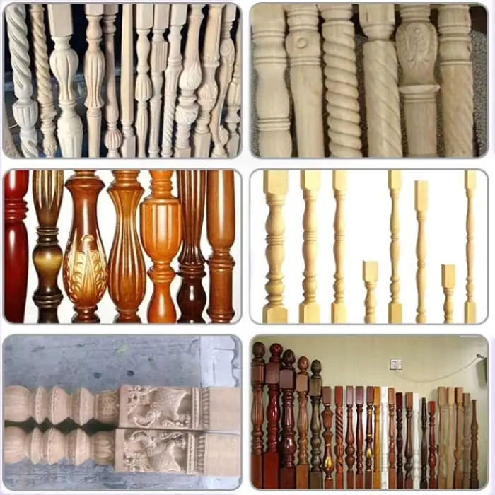 The machine is designed for wood turning, fluting and engraving. Typical applications include furniture legs, detailed staircase components, baseball bats, cylindrical shaping, and engraved or fluted decorative work.